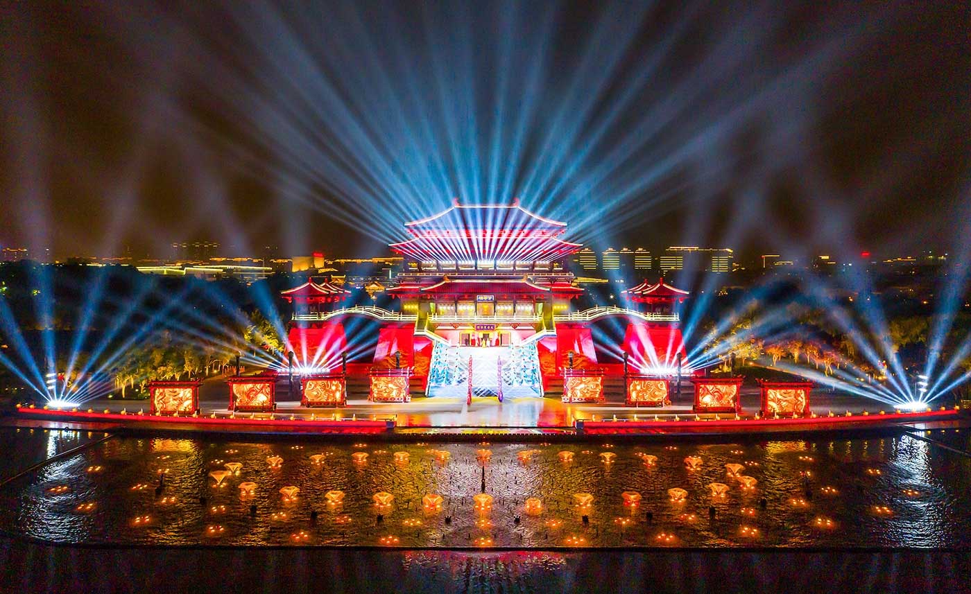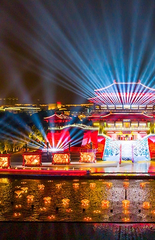 一池曲江水,千秋盛唐夢(mèng)。《大唐追夢(mèng)》演出是大唐芙蓉園即將推出的大型水舞光影秀,演出是由國(guó)家級(jí)制作人沙曉嵐擔(dān)任總導(dǎo)演,G20杭州峰會(huì)《最憶是杭州》、北京冬奧8分鐘執(zhí)行導(dǎo)演王醒及團(tuán)隊(duì)匠心打造的具有西安曲江特色“日游夜演”的全新概念文旅演藝產(chǎn)品。 大型水舞光影秀《大唐追夢(mèng)》依托芙蓉園恢弘大氣的山水園林景觀,將盛唐文化和游客參與深度結(jié)合,通過(guò)場(chǎng)景、故事的演繹和各類新技術(shù)的運(yùn)用,從內(nèi)容上嘗試將觀眾心境與劇中的實(shí)景環(huán)境相銜接,踐行一種新的“游船尋夢(mèng)”的體驗(yàn)關(guān)系。 觀眾席采用了“游船觀演式體驗(yàn)”形式,共設(shè)五艘游船,每艘游船可乘坐觀眾160人,共800座。觀眾乘船泛舟看演出的同時(shí),還能在水上游弋暢玩,隨著美輪美奐的場(chǎng)景,去探索神秘莫測(cè)劇情。展示出芙蓉園亭臺(tái)樓閣溢彩、廊橋水波輝映的迷人景致。營(yíng)造出穿越千年,貫穿古今的浪漫意境,讓觀眾真切感受古樸濃郁的盛唐文化氣息。 整場(chǎng)演出的表演區(qū)則通過(guò)多組可升降水幕景觀藝術(shù)裝置、多色激光投射、多維水噴泉設(shè)備、霧森系統(tǒng)、建筑投影、沉浸式環(huán)繞音響等現(xiàn)代科技手段,烘托美輪美奐的獨(dú)特意境,呈現(xiàn)出一臺(tái)全新沉浸式全域水幕景觀秀,讓觀眾全身心地融入、盡享文化盛宴。 風(fēng)光旖旎迷人處,最是曲江夜游時(shí)。當(dāng)夜幕降臨,夢(mèng)幻光影下的紫云樓無(wú)處不透露著濃郁文化氣息,芙蓉園用色彩相宜的照明設(shè)施,形成豐富的視覺(jué)層次感,營(yíng)造雅致的夜游氛圍,使紫云樓夜間樓體的塑造、光景氣氛、照明效果更加立體、生動(dòng),為景區(qū)增添新的魅力。 演出中還大量加入了時(shí)下最先進(jìn)、最流行的透明“冰屏”,有了冰屏加持,舞臺(tái)效果瞬間變得驚艷。觀眾在觀看時(shí),畫(huà)面懸浮于空中,清晰通透,像浮在透明玻璃上一樣,享受著如夢(mèng)如幻的沉浸式視覺(jué)新體驗(yàn)。 引人入勝的演出內(nèi)容、驚艷新奇的舞臺(tái)效果、豐富有趣的游玩體驗(yàn),大唐芙蓉園用拳拳誠(chéng)意帶游客閱讀歷史、感受人文。大型水舞光影秀《大唐追夢(mèng)》演出不僅展現(xiàn)出樹(shù)立旅游市場(chǎng)新旗幟、全力打造夜游市場(chǎng)新勢(shì)力的超強(qiáng)勢(shì)頭,更力圖將絢麗多彩、大氣恢宏的盛唐歌舞文化推向世界。 ...